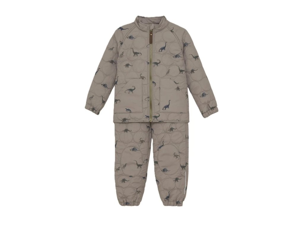 Praktická termosúprava Fungi od EN FANT s cool potlačou dinosaurami. Súprava obsahuje termo bundu a termo nohavice v zladených farbách. Bunda má reflexné detaily na chrbte pre zvýšenú viditeľnosť. Nohavice majú elastický pás s nastaviteľnou vnútornou šnúrkou a široké rebrované manžety na členkoch pre perfektné prispôsobenie. Povrchová úprava BIONIC FINISH® ECO.
