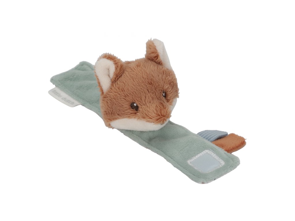 Mäkká hrkálka s rozkošnou líškou ľahko pripevníte na ruku dieťaťa s pomocou úchytu na suchý zips. Hračka z jemného plyšového materiálu hrká, šuštia a láka dieťa na skúmanie.