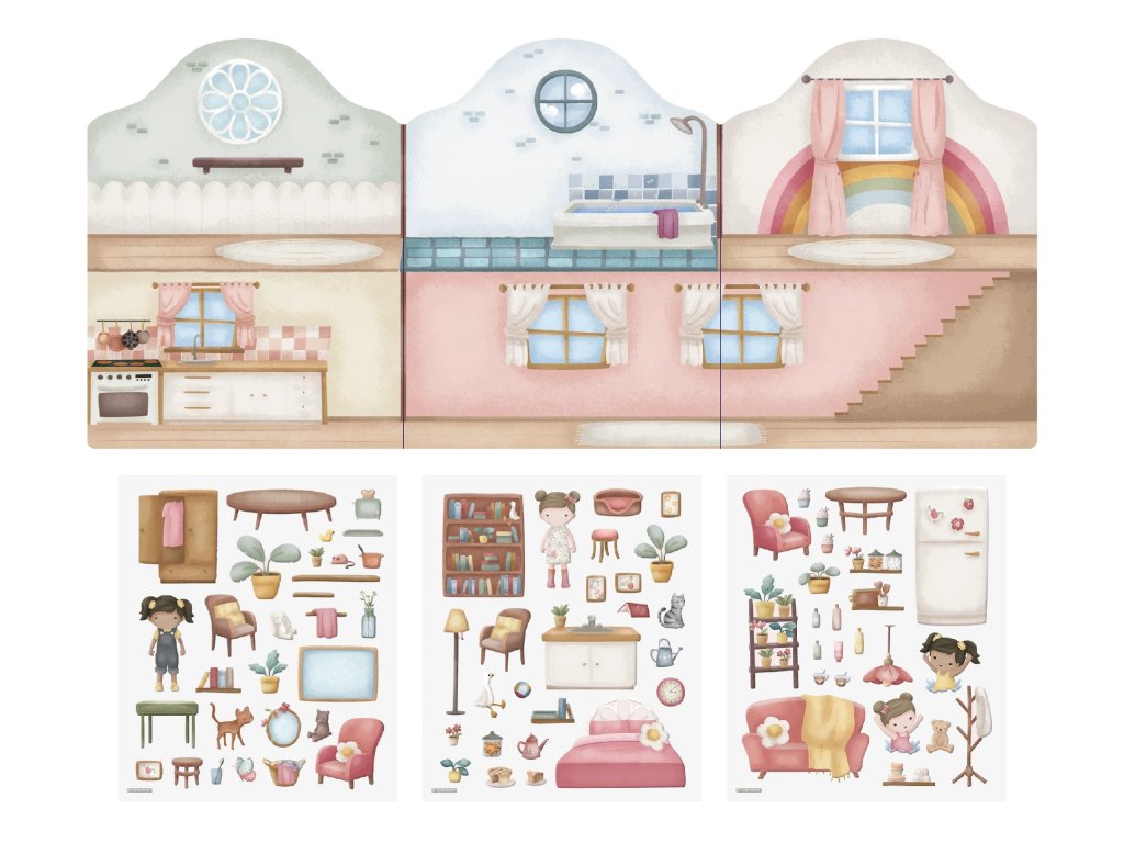 Podporte detskú fantáziu s touto sadou opakovane použiteľných samolepiek Little Dutch. Deti môžu znova a znova vyzdobiť domček Rosy viac ako šesťdesiatimi veselými 3D samolepkami a zakaždým vytvoriť iný príbeh.