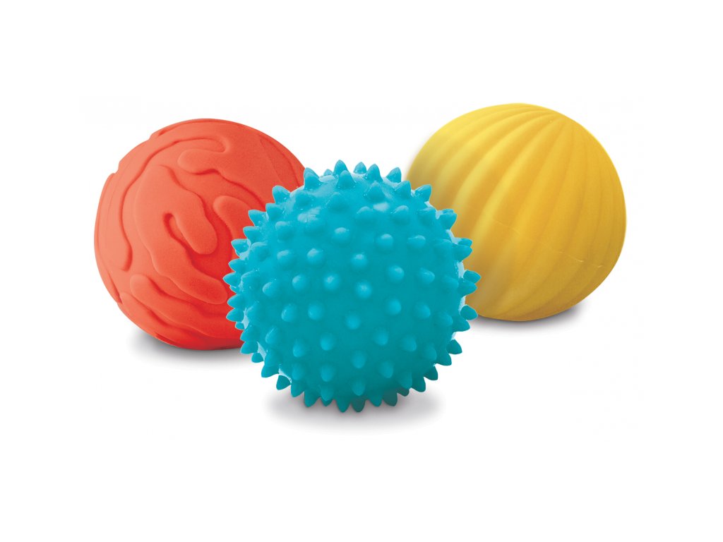 Mäkké loptičky s rôznymi povrchmi a výstupkami pre relaxáciu i hru s vaším dieťaťom. Loptičky sú ideálne pre jemnú a príjemnú masáž. Pri držaní loptičky rukami alebo šliapaním na loptičku bosými nožičkami stimuluje rozvoj zmyslov dieťaťa a pomáha rozvoju rovnováhy, ktorá je dôležitá pre prvé kroky dieťaťa. Hádzanie, kotúľanie a chytanie loptičky pomáha aj rozvoju motorických zručností a koordinácie dieťaťa.