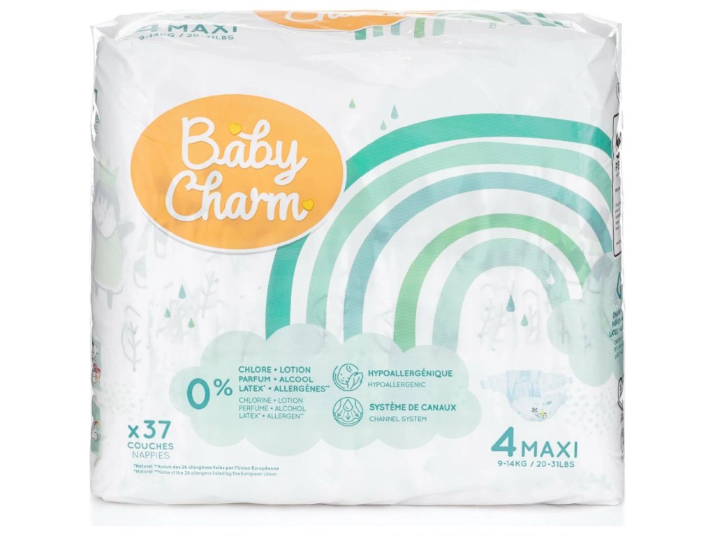 Mesačné balenie plienok, je zásoba, ktorá by vám mala vydržať na jeden mesiac s bábätkom. Plienky Baby Charm veľkosť 4 sú vhodné pre bábätka s hmotnosťou 7-14 kg.