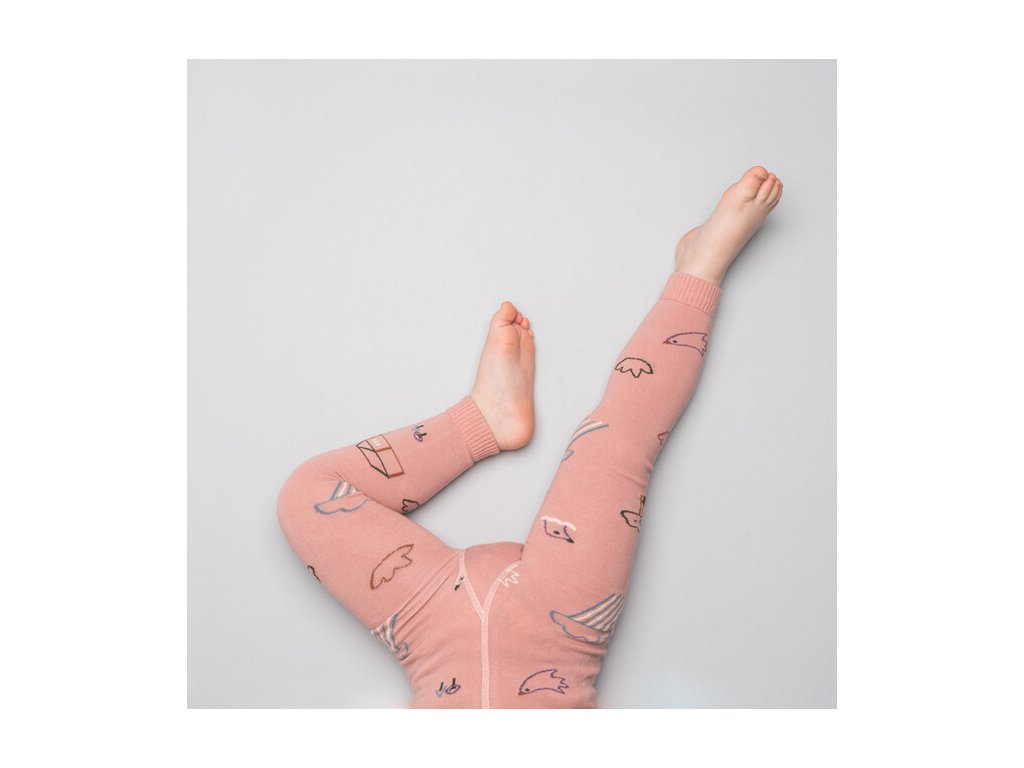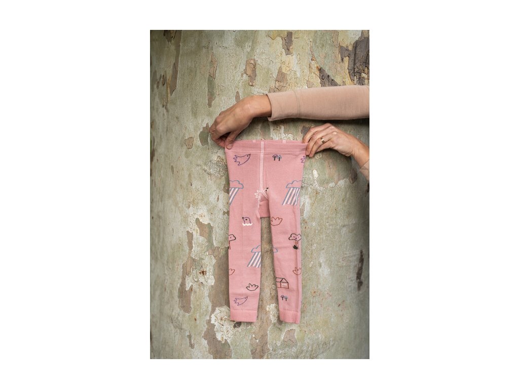 MOE- Detské staroružové bavlnené legíny Kreslená krajina