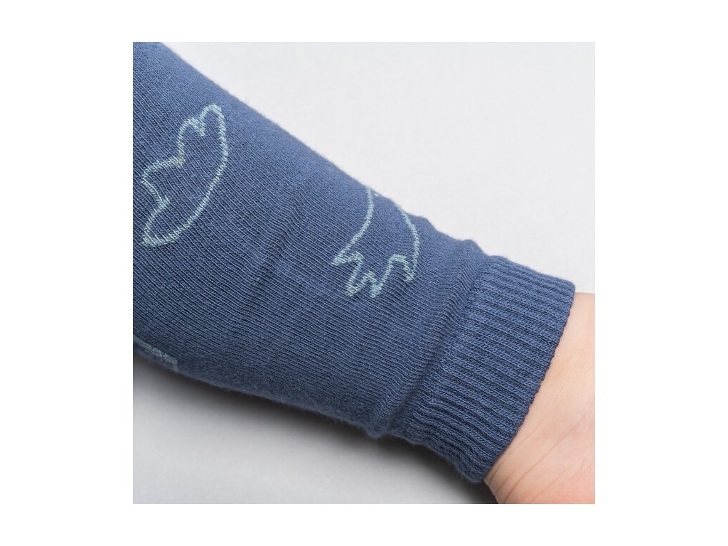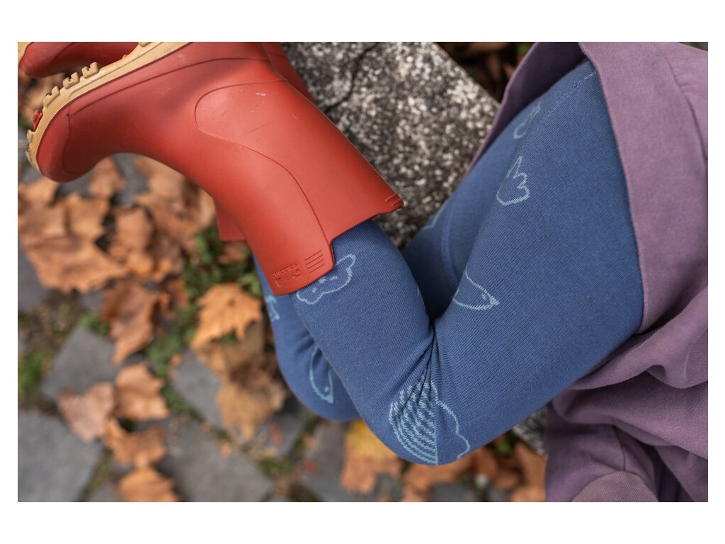 Tmavomodré legíny s kreslenou krajinou sú vyrobené z kvalitnej bavlnenej tkaniny, do ktorej pridávame v malom množstve vlákna polyamidu a elastanu. Vďaka tomu sú príjemné prispôsobivé a odolnejšie aj pri častom používaní. Objavte rovnaké vzory aj na staroružových, bordových a pieskových detských legínach, tmavozelených pančuchách a na detských aj dospeláckych modrých ponožkách.
