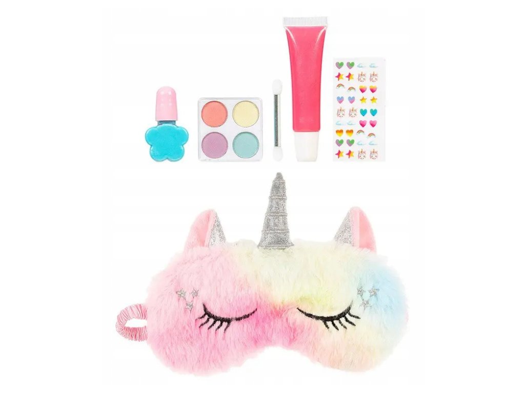 Súprava detskej kozmetiky s maskou na spanie v tvare jednorožca. Balené v kartónovej krabičke s priehľadným okienkom. Určené pre deti od 6 rokov.